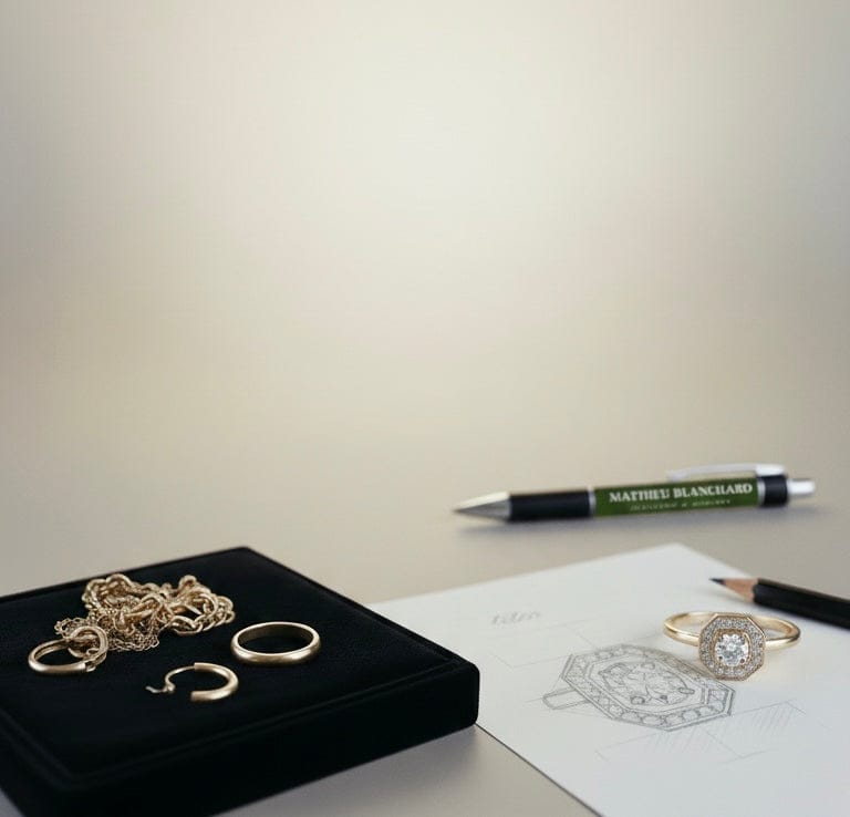 Mathieu Blanchard réinvente l'art du bijou avec simplicité et élégance. Notre maison est réputée pour ses créations exclusives et sur mesure, conçues pour être portées au quotidien. Guidé par des valeurs éthiques et une profonde admiration pour la nature, nous sélectionnons avec soin des matériaux d'exception pour chaque pièce.