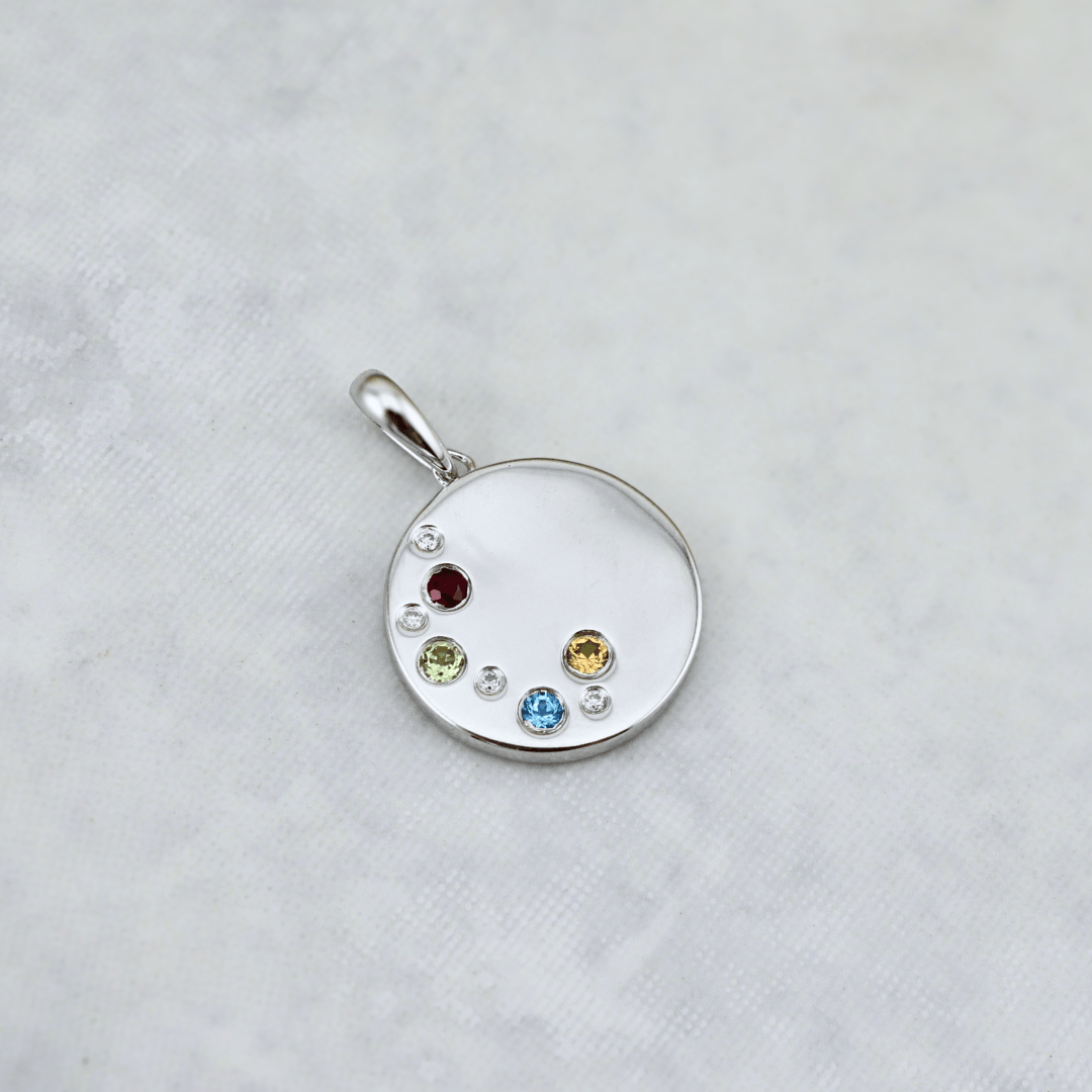 Un pendentif unique, réalisée spécialement pour vous et inspirée par les pierres de naissance des personnes qui vous sont chères. Chaque bijou est conçu sur mesure en fonction de votre style, de vos préférences et des pierres de naissance de votre choix, créant ainsi un bijou personnel et symbolique. Que ce soit pour célébrer une relation précieuse, une famille unie ou des moments marquants, celui-ci raconte votre histoire à travers des pierres soigneusement sélectionnées et un design raffiné.