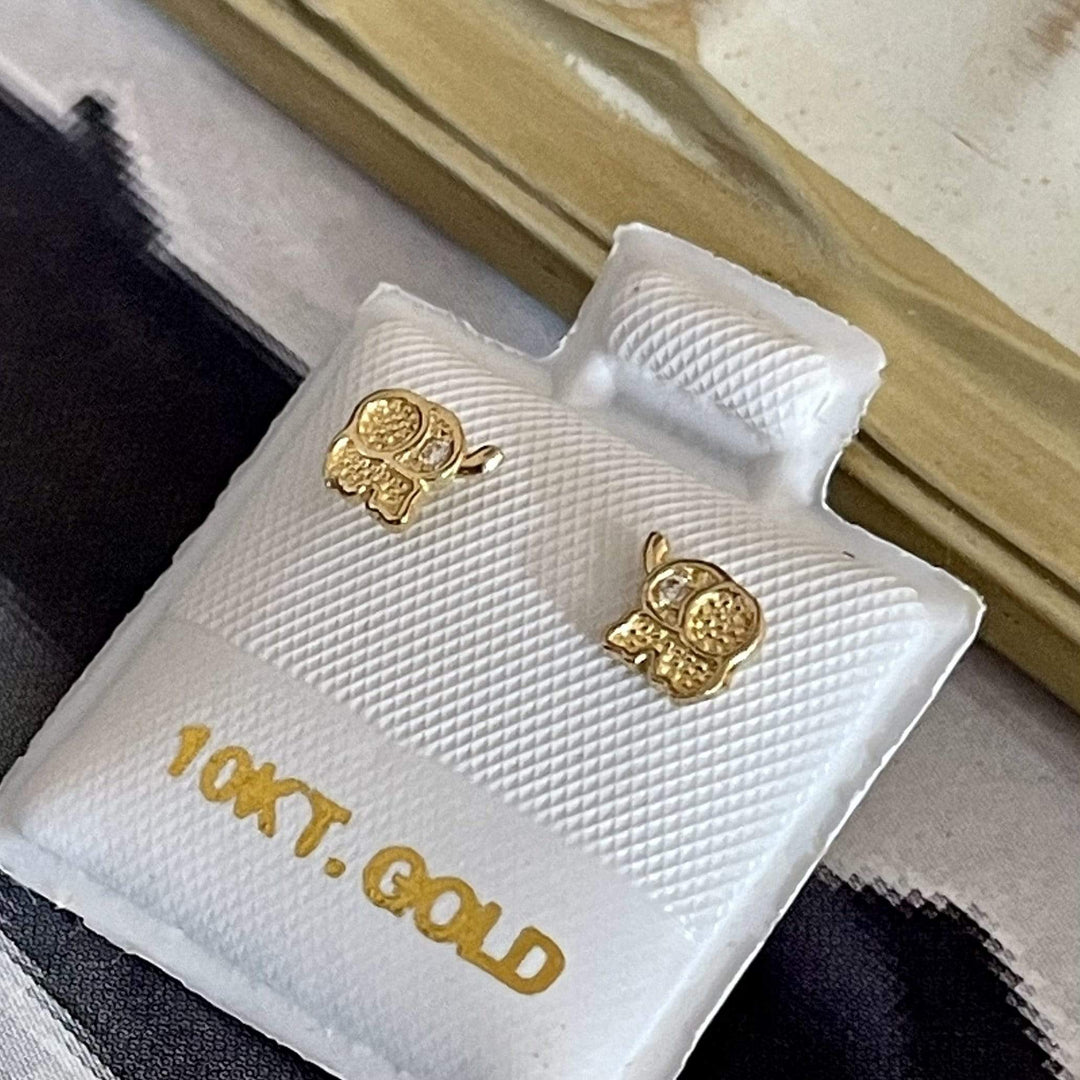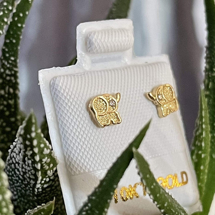 Boucles d'oreilles Petits éléphants 6 x 6 mm, avec tiges vissées, en or jaune 10K et zircons cubiques. Elles sont confortables et adaptées pour un enfant, mais aussi pour un adulte.