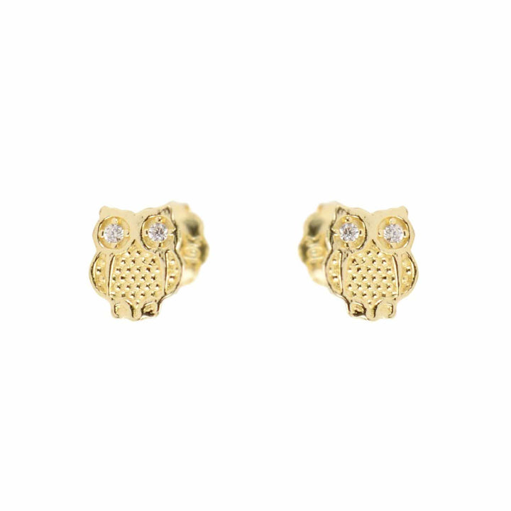 Boucles d'oreilles Hiboux 5 x 7 mm et zircons cubiques en or jaune 10K avec tiges/papillons vissées. Elles sont confortables et adaptées pour un enfant, mais aussi pour un adulte.