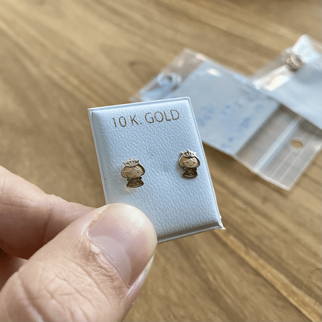 Boucles d'oreilles Royales, avec tiges vissées, en or blanc et jaune 10K. Dimension: 5 x 7 mm. Elles sont confortables et adaptées pour un enfant, mais aussi pour un adulte.