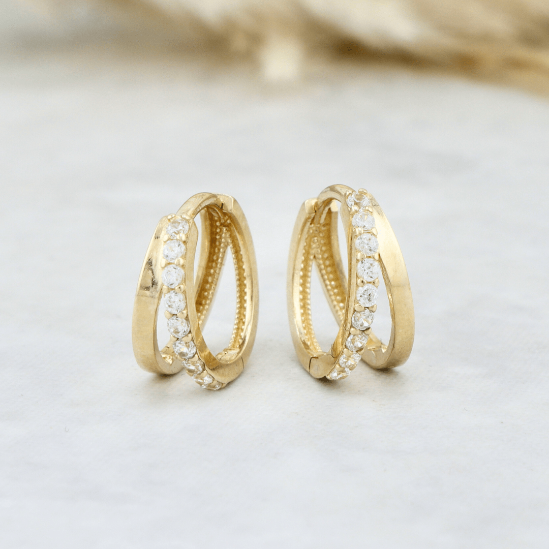 Boucles d'oreilles huggies Double rang en or 10K