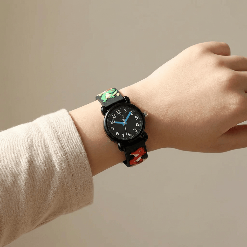 Montre qui arbore un bracelet noir et des camions de pompiers en relief 3D qui raviront les petits aventuriers; elle deviendra un compagnon idéal pour chaque mission de sauvetage. Offrez à votre enfant un accessoire amusant et fonctionnel qui éveillera son imagination tout en l'aidant à garder un œil sur l'heure.