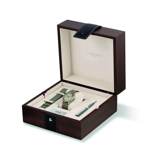 In honour of its rich history, Longines has drawn inspiration from a 1940’s watch model to create The Longines Heritage Military. True to the original lines of a timepiece designed for the British Royal Air Force, this sleek, reimagined watch belongs to a timeless style that has made the winged hourglass brand famous. To reproduce the original timekeeper’s patina, the dial on the military watch has been hand sprayed with tiny black droplets, making each and every piece unique.