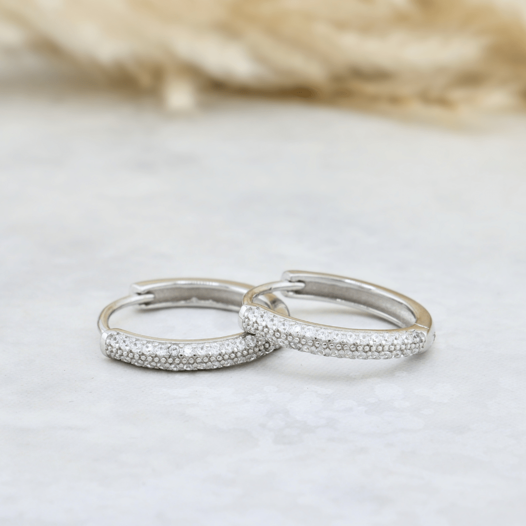 Huggie earrings with cubic zirconia set in 925 sterling silver. They are perfect and comfortable for a child, but also for a teenager or adult.