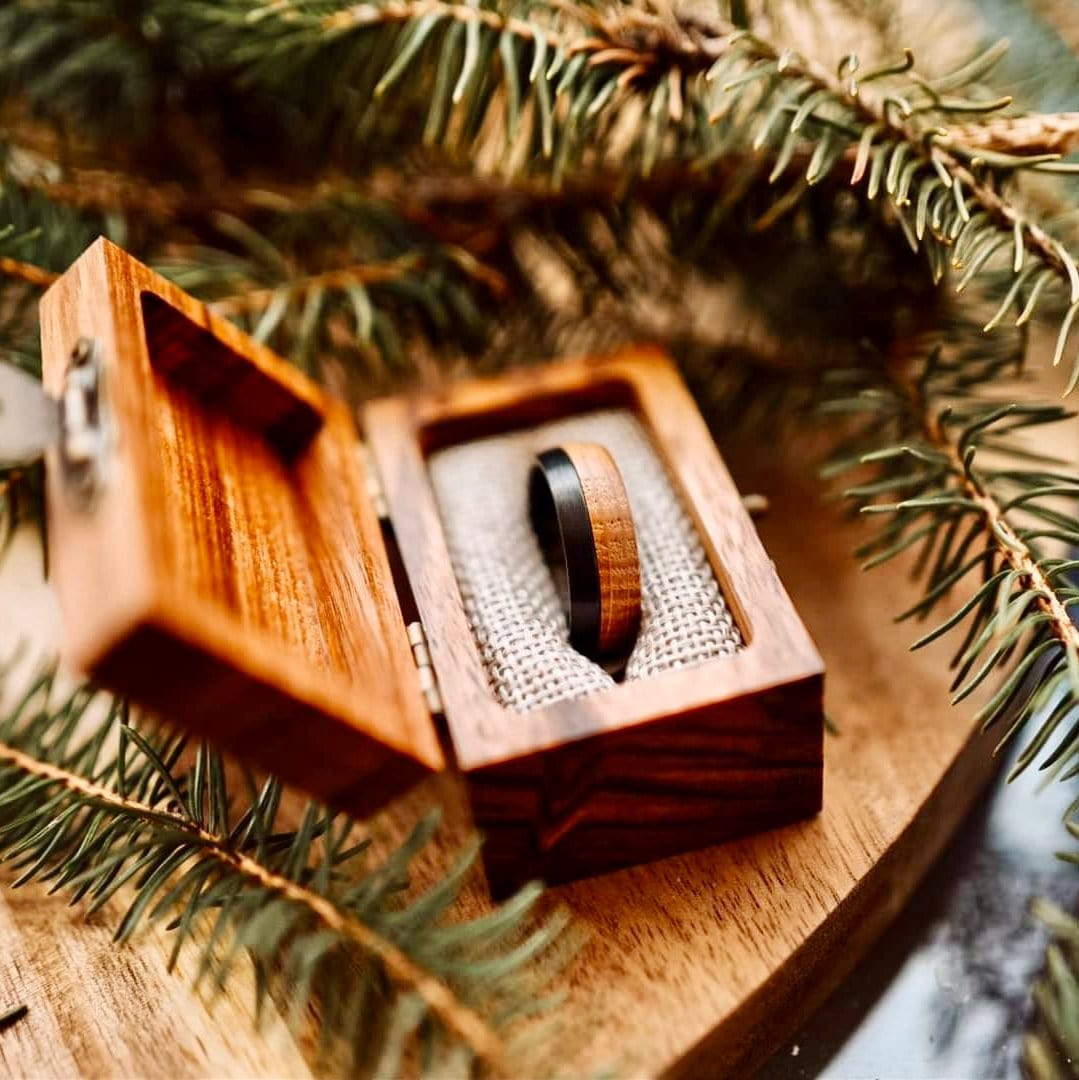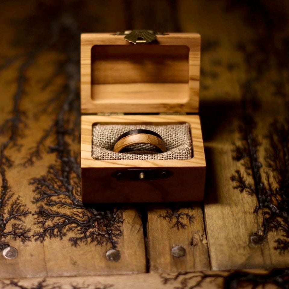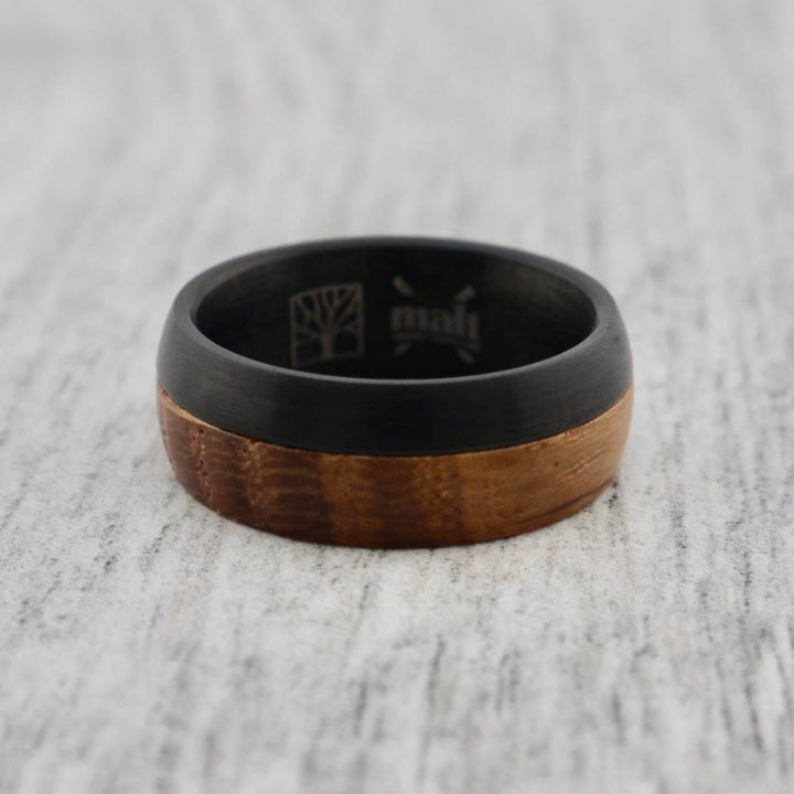Tungsten ring and whiskey wood