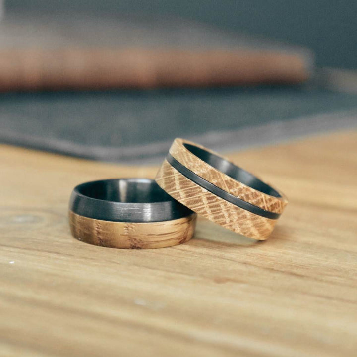 The Rings Roadtripmadewoodstarted their lives in whiskey barrels made of oak. All the wood of selected barrels are very similar, but not identical. These strips are made from recovered wood from the aged barrels. Most of the wood that uses us contains unique charred oak traces!