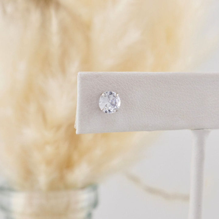 Classic earrings with cubic zirconia set in 925 sterling silver, with posts and balls screwed on the back. They are perfect and comfortable for a child, but also for a teenager or adult.