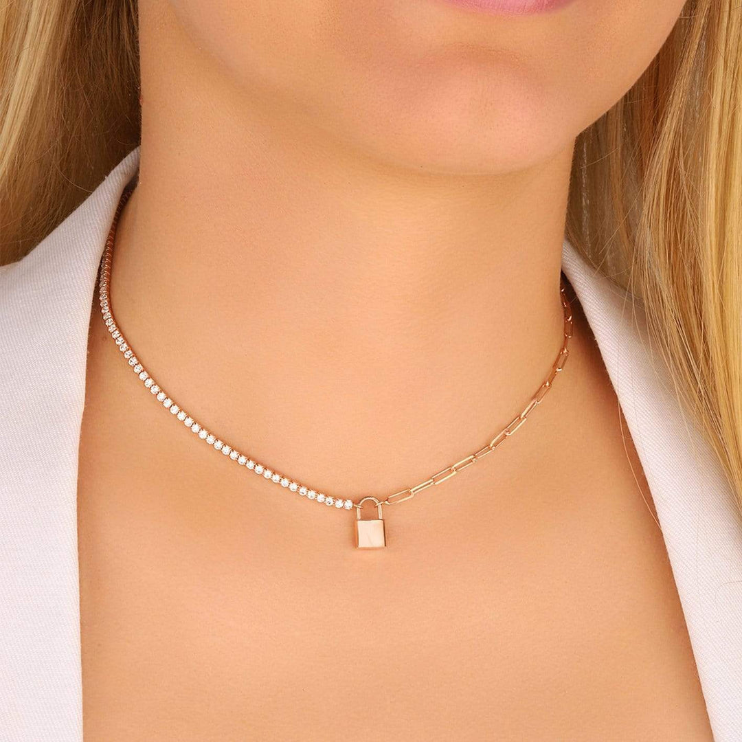 Necklace / half chain chain, half tennis, with padlock pendant.
