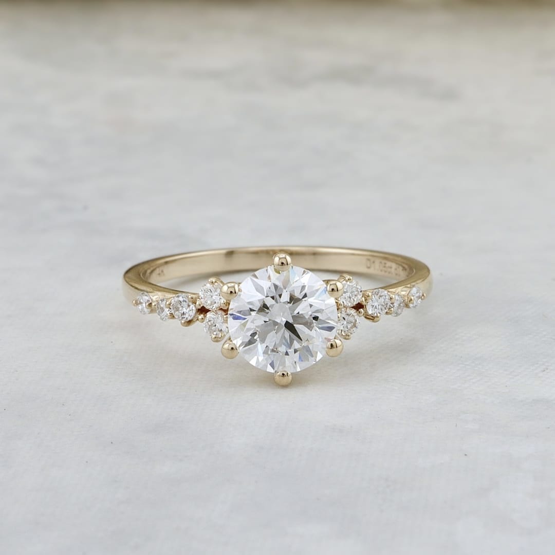 The Nimbus ring by Mathieu Blanchard Joaillerie. Nimbus is a cloud: a composition of small stones placed freely around a central solitaire, as if floating on the ring. We deliberately move away from perfect alignments and overly "straight" lines. The result is more alive, with an impression of movement and relief, while maintaining a clean and modern look.